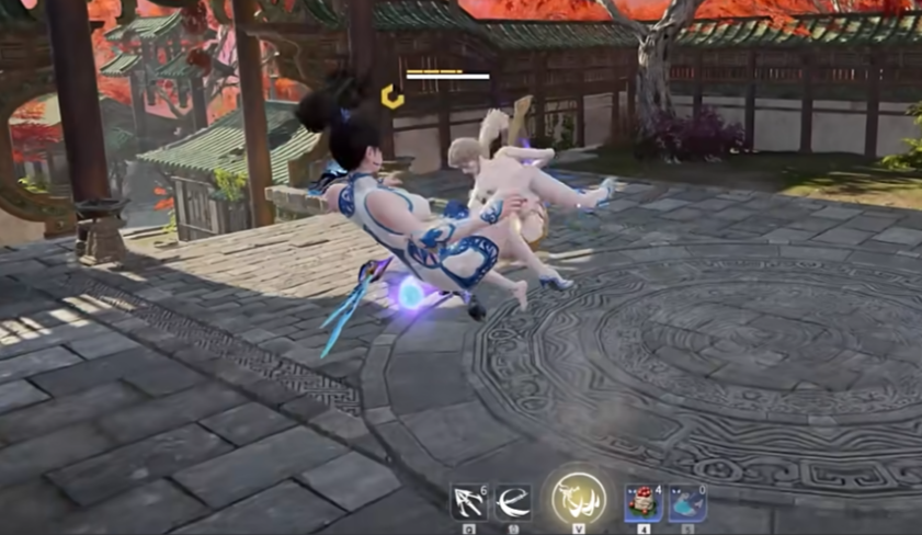 过肩摔的实战价值不仅在于单体控制,更能衔接高强度连招,摔投命中后对手会陷入强制倒地僵直,可立刻接阔刀右键蓄力、太刀百裂斩或长剑纵剑气,打出稳定爆发伤害。面对多人混战,过肩摔可用于分割战场,将核心目标摔离队友掩护区域,同时打断敌方技能连招,打乱整体进攻节奏,也可在追击残血时使用,防止对手利用飞索逃生。