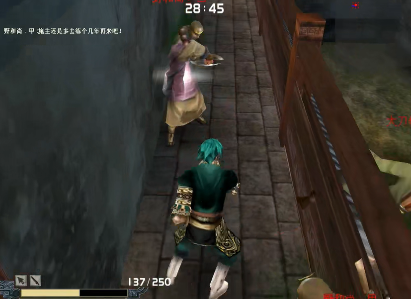 进入内城阶段需谨慎处理敌人触发顺序。二楼野和尚必须逐个引诱至走廊外围,利用枪技↑A←→A↓↓↑A连招击杀,过早消灭两名和尚会触发蒙面杀手增援。无名杀手出现后应退回走廊边缘卡位攻击,规避匕首暴怒技能。此阶段需严格控制药品消耗,保留至少50%补给用于BOSS战。